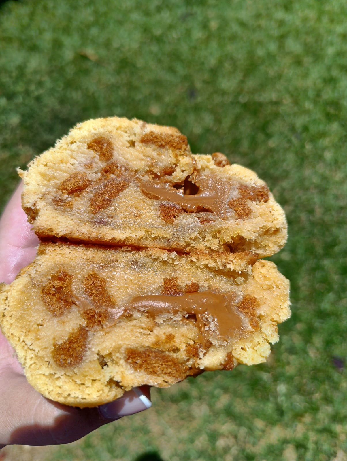 The Biscoff Happie is a sweet treat of note containing chunks of Biscoff in the moist dough and Biscoff spread in the center this Happie is out of this world. An ideal split between sweet gooey moist and a pinch of salt.