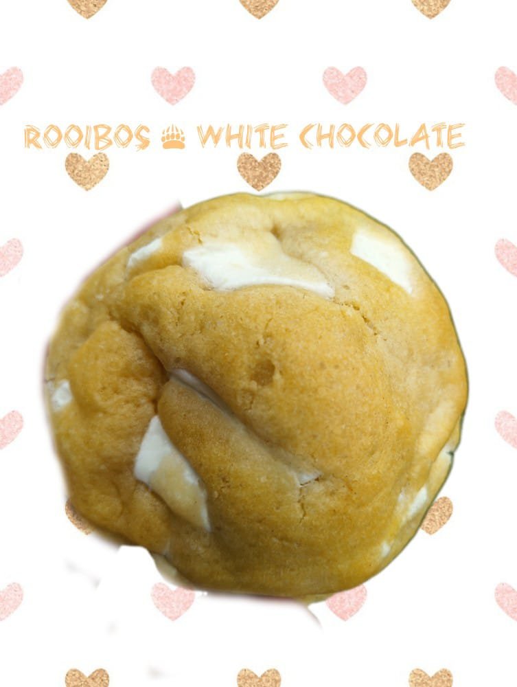 A thick, bakery-style NYC cookie loaded with creamy white chocolate chunks and filled with a silky rooibos-infused condensed milk center. Rich, buttery, and proudly South African with every gooey bite.